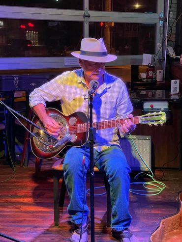 Robin Baker has years of live performance experience on the local club scene in the Chattanooga, Tennessee area. Additionally on the regional festival scene past appearances include: The National Cornbread Festival, Franklin County Fair, Marion County Fair, Riverbend, Riverfront Nights in Chattanooga as well as Nightfall and the Walk, Run, Pedal Jamz Festival in Chattanooga. Keeping the blues alive with solo, duo and power trio performances exemplifies the range of Robin's guitar work while tracking the migration of the blues from the Mississippi Delta days of acoustic slide to the electrified Chicago blues. Robin released a new solo acoustic LP " Long Face On" 3/2/22, featuring Jessica Nunn's amazing viola work on the title cut. Recorded and engineered at The Soundry by Brett Nolan. This original work is not only influenced by the blues but also a healthy mix of jazz, folk, and country with a little comic relief mixed in. Robin frequently hosts the Gate 11 Distillery Monday Night Blues Jam now in it's 3rd year of helping to keep the blues alive in the Chattanooga music community.